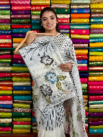 Soft Glass Tussar Scallop Border Flower Design Hlaf White Saree