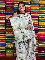 Soft Glass Tussar Scallop Border Peacock Design Half White Saree