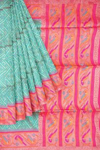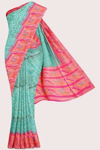Soft Ikkath Silk Doble Border Waving Green With Pink Saree