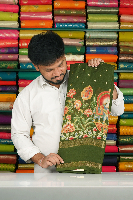Soft Italian Crepe Silk Elephante Printed Dark Mehandi Green Saree