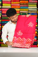 Soft Italian Crepe Silk Embroidary Work Zari Border Bright Pink Saree