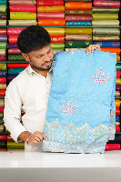 Soft Italian Crepe Silk Embroidary Work Zari Border Light Sky Blue Saree