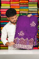 Soft Italian Crepe Silk Embroidary Work Zari Border Purple Saree