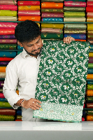 Soft Jute Pythoni Silk Silver Zari Weaving Bottle Green With Teal Green Saree