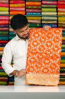 Soft Jute Pythoni Silk Silver Zari Weaving Bright Orange With Light Orange Saree