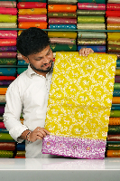 Soft Jute Pythoni Silk Silver Zari Weaving Yellow With Purple Saree