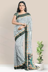 Soft Jute silk And Zari weaving Border Half White With Black Saree