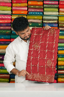 Soft Jute Silk Checks Kanchi Elephant Butti Dark Maroon Saree