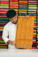 Soft Jute Silk Checks Kanchi Elephant Butti Dark Mustard Yellow Saree