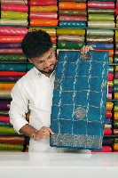 Soft Jute Silk Checks Kanchi Elephant Butti Rama Blue Saree
