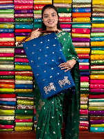Soft Jute Silk Cow Border And Butti Peacock Blue Saree