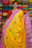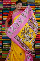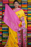 Soft Jute Silk Digital Print Yellow With Baby Pink Saree