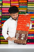 Soft Jute Silk Doriya Lines And Floral Border Rust Orange With Brwon Saree
