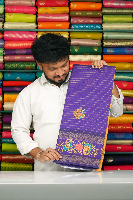 Soft Jute Silk Doriya Weaving Kalamkari Peacock Print Purple With Mustard Yellow Saree