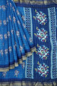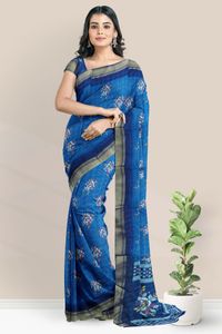 Soft Jute Silk Floral Digital Print Bright Blue Saree