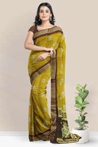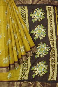 Soft Jute Silk Floral Digital Print Mustard Yellow Saree