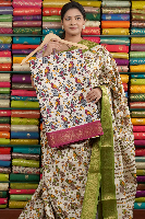 Soft Jute Silk Ikath Print Half White With Magenta Pink Saree