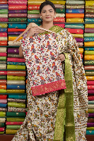 Soft Jute Silk Ikath Print Half White With Pink Saree