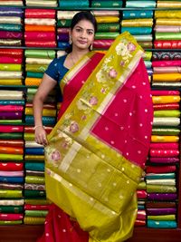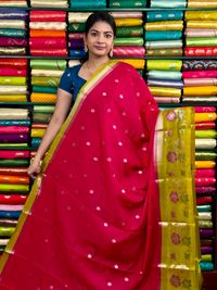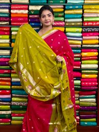 Soft Jute Silk Paithani Border Pink And Menthi Green Saree