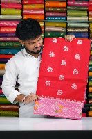 Soft Jute Silk Silver Zari Flower Butti Bright Pink With Baby Pink Saree