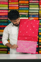 Soft Jute Silk Silver Zari Flower Butti Bright Pink With Baby Pink Saree