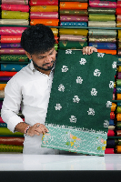 Soft Jute Silk Silver Zari Flower Butti Dark Green With Teal Green Saree