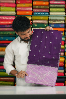 Soft Jute Silk Silver Zari Flower Butti Purple With Lavender Saree