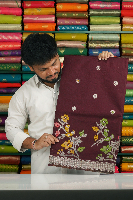 Soft Jute Silk Silver Zari Meenakari Butti Brown Saree