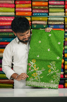 Soft Jute Silk Silver Zari Meenakari Butti Green Saree