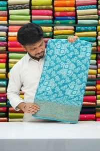 Soft Jute Silk With Floral Print Blue Saree