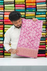 Soft Jute Silk With Floral Print Magentha Pink Saree