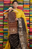 Soft Jute Silk Zari Lines Yellow With Brown Saree