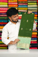 Soft Kachi Silk Silver And Gold Zari MeenaKari Butti Dark Green With Teal Green Saree
