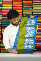 Soft Kanchi Pattu Silver Zari Weaving Mehandi Green With Dark Coppersulphate Blue Saree