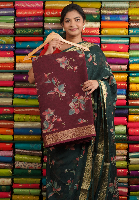 Soft Kora Floral Design Brown Saree