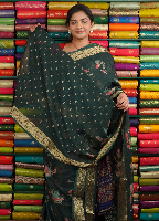 Soft Kora Floral Design Green Saree