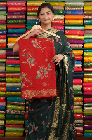 Soft Kora Floral Design Red Saree