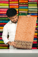 Soft Kora Silk Fancy Print With Zari Border Light Brown With Chocolate Brown Saree