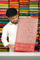 Soft Kora Silk Fancy Print With Zari Border Onion Pink With Red Saree