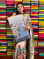 Soft Kora Silk Floral Digital Print Half White With Dark Lavender Saree
