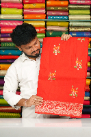 Soft Kosa Silk Embroidary Work Zari Border Bright Red Saree