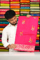 Soft Kosa Silk Embroidary Work Zari Border Dark Pink Saree