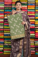 Soft Kota Gold Zari And Design Mehandi Green Saree