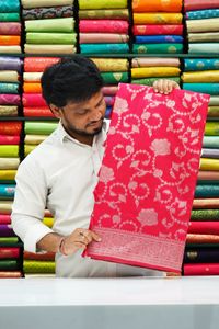 Soft Lenin Jute Silk Silver Zari Weaving Bright Pink Saree