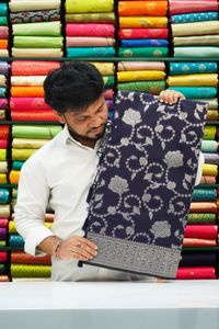 Soft Lenin Jute Silk Silver Zari Weaving Dark Navy Blue Saree