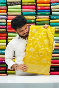 Soft Lenin Jute Silk Silver Zari Weaving Golden Yellow Saree