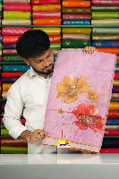 Soft Lenin Tissue Floral Digital Print Kadi Border Pastal Pink Saree
