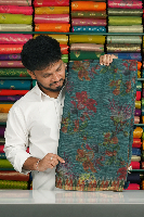 Soft Linen Silk Floral Digital Printed Rama Green Saree