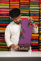 Soft Maheswari Silk Floral Digital Print Purple With Brown Saree