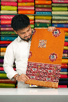 Soft Maheswari Silk Ikkath Printed Border Dark Mustard Yellow Saree